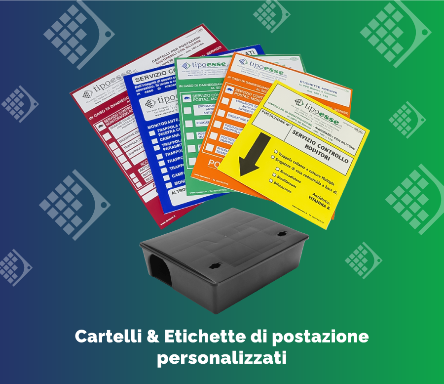 Tipoesse è un’azienda nata nel 1971 che oggi si è specializzata nella produzione di cartelli ed etichette in plastica personalizzati per il monitoraggio di roditori e insetti.