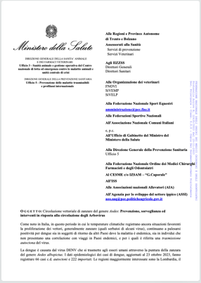 A.I.D.P.I.: Dengue in Italia, la direttiva del Ministero della Salute